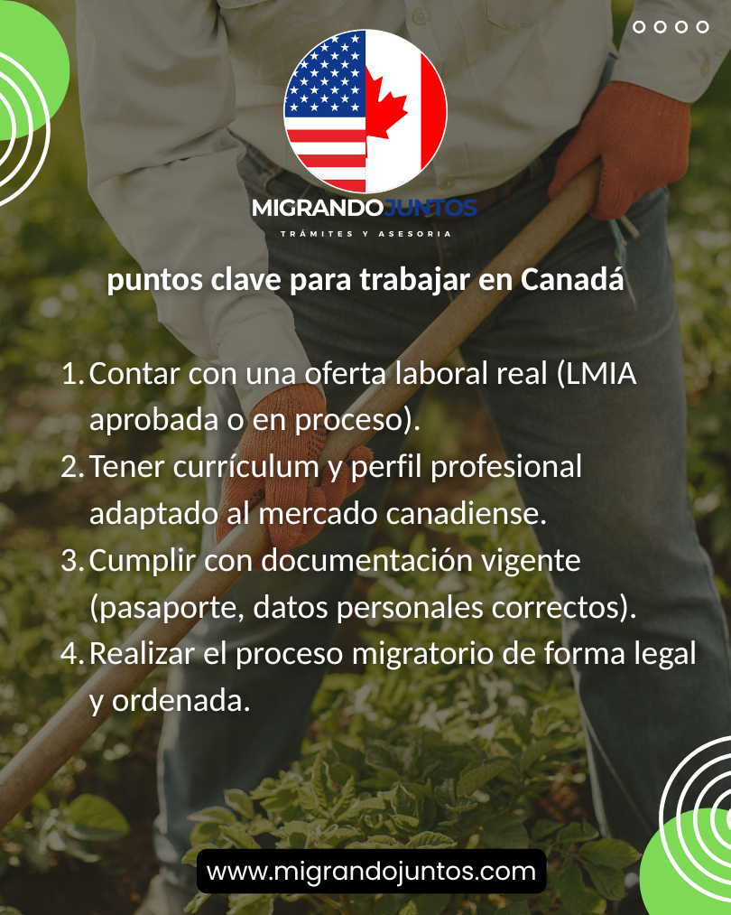 Puntos clave para trabajar legalmente en Canadá Trabajar en Canadá es una gran oportunidad, pero es fundamental hacerlo de manera legal y segura. Estos son los puntos más importantes que debes conocer antes de iniciar tu proceso: 1. Oferta de trabajo formal Para trabajar legalmente en Canadá necesitas una oferta laboral real de un empleador […]